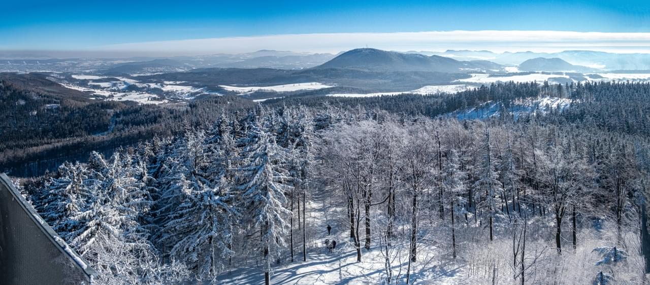 Chełmiec (851 m n.p.m.) and Wałbrzyskie Mts. seen from Trójgarb (778 m n.p.m.).