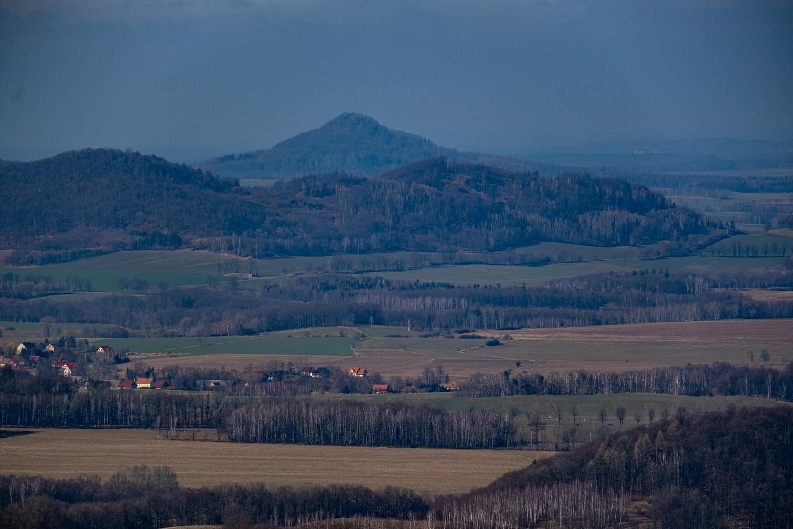 Ostrzyca Proboszczowicka (501 m n.p.m.) seen from Dłużec (591 m n.p.m.)
